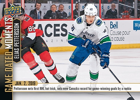 Card #42 (Jan. 2, 2019) – Pettersson’s First Career Hat-Trick Breaks Canucks Rookie Record for Game Winning Goals