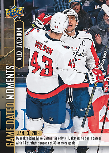 Card #43 (Jan. 3, 2019) – Ovechkin Becomes Only the 2nd Player to Start Career with 14 Consecutive Seasons of 30+ Goals