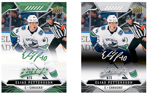 Collect and combine 20 copies of any individual 2019-20 MVP Hockey Base Set or Base Set – High Series SP card (#1-250) to receive an e-Pack exclusive Green Script Parallel of that card with the ability to have the physical card mailed to you.
