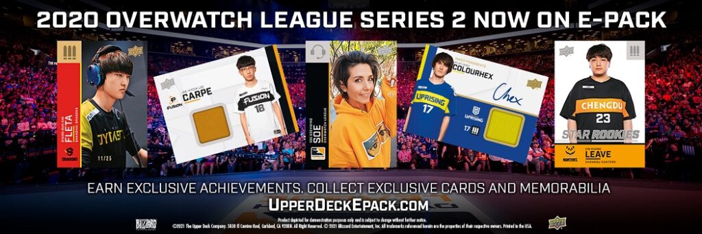 Upper Deck is excited to announce that the 2020 Overwatch League™ Series 2 Trading Cards are now available on Upper Deck e-Pack. You can purchase these cards by individual packs, a box (24 packs), or a case (12 boxes)!