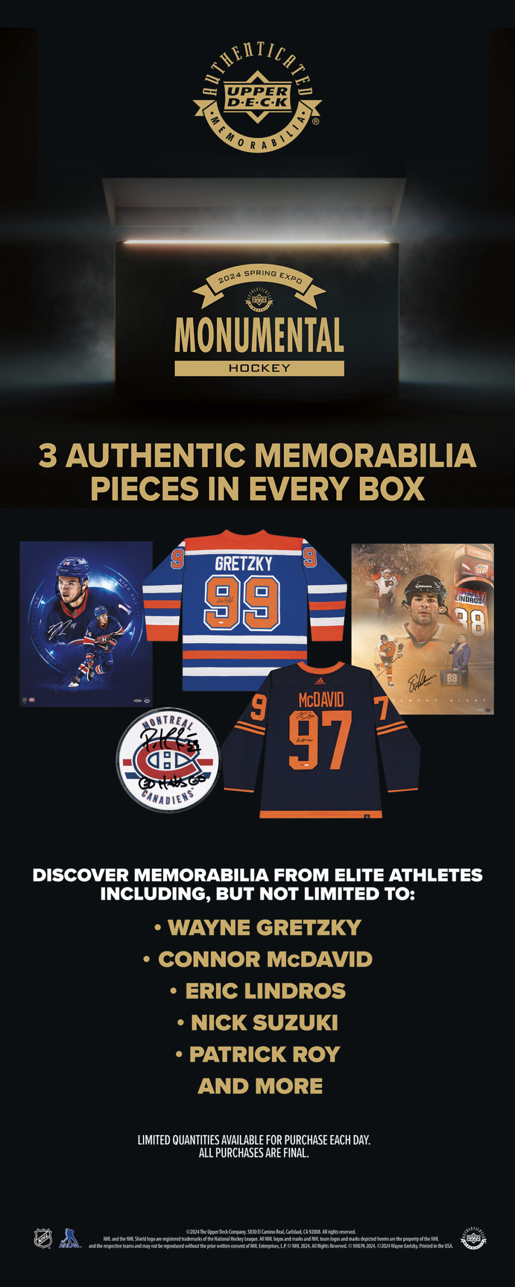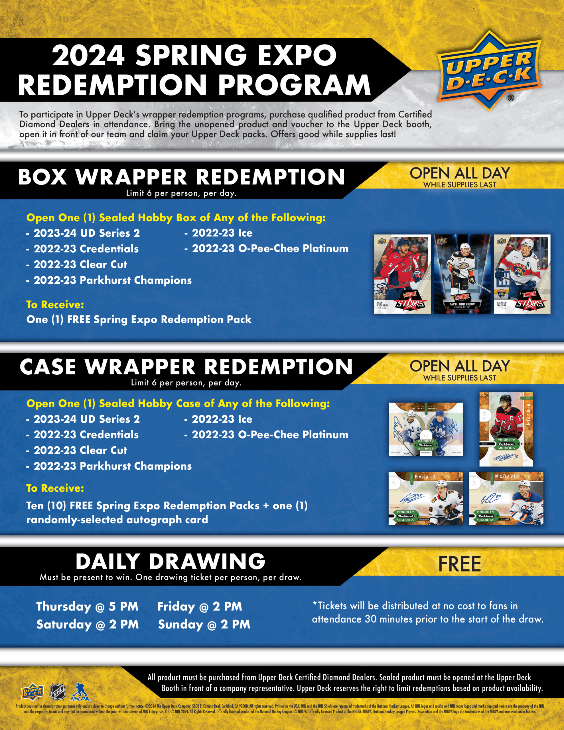 The Spring Sports Card & Memorabilia Expo will be taking place April 25-28, 2024. Upper Deck is excited to be a part of yet another exciting annual event for all sports collectors! As part of the largest and longest-running sports collectibles show in Canada, Upper Deck will bring back the ever-popular Wrapper Redemption Program, in addition to a wide variety of other initiatives. Visit Upper Deck at booth #638 to learn more!