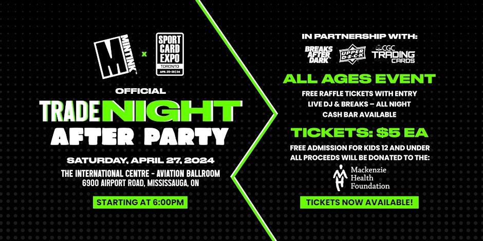 The Official Trade Night After Party will start April 27th at 6:00pm. As a proud sponsor of the event, Upper Deck will give breaker mats to the first 50 collectors or while supplies last.