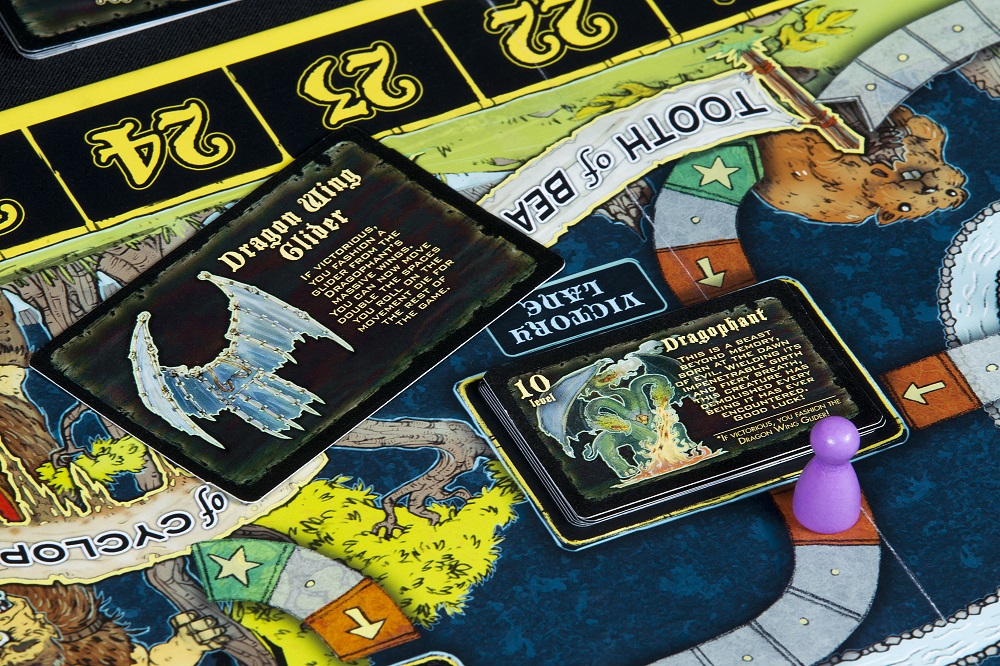Within moments, as if the Muses had taken control of my pen, I was looking down at a piece of paper that outlined a fun-looking, fantasy-themed, suspense-filled, half-luck / half-strategy, part-“take that,” part-pick-up-and-deliver, all race-against-the-clock, gateway game: QUEST FOR THE ANTIDOTE! In Quest for the Antidote, players would be “poisoned” and would have to venture out across a dark and dangerous landscape in search of their antidote items, battling vile monsters and dodging wicked traps along the way, all while racing to get back to the apothecary’s hut in the center of town to be cured. Being poisoned, though, players would naturally get weaker and weaker whenever they engaged in combat or sprinted down a perilous pathway, and sometimes players would meet their doom by running out of breath (i.e., life) before they could cure themselves. With this outline in place, I then populated the world with a host of varied monsters, each with their own unique story and each feeling as though they belong in this wild fantasy realm – a realm I determined would be ruled by the mad “Poison King” of Greek antiquity, King Mithridates. Next, I added in meddling cards so players could hinder one another in their individual quests, thus keeping the game close and competitive, but I also incorporated loot cards in the far reaches of the board and drop cards associated with high-level monsters to give players some valuable rewards and advantages… and to offset any bad luck, they may be encountering with their dice rolls. Less than 48 hours later, I had a fully playable poster-board and clip-art prototype, and after a few months of play-testing and balancing the monsters, loot, drops, and meddling cards – and determining exactly how much “breath” a savvy player would need to win the game while just barely surviving — the foundations of my game were in place!