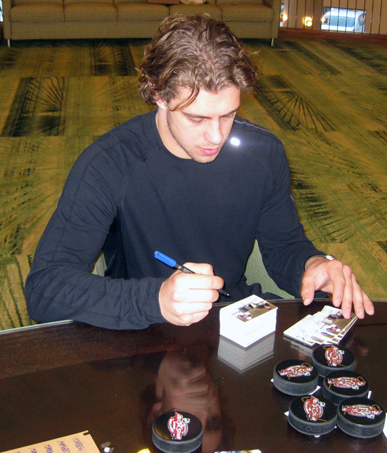There was another exciting aspect to the weekend fans don’t normally get to see however as it takes place behind the scenes. When you have that many top stars in one place, it provides Upper Deck a great opportunity to collect signatures of these athletes for use in future trading card sets. So Upper Deck works with our partners at the NHL to spend some time with the players in a special signing suite.