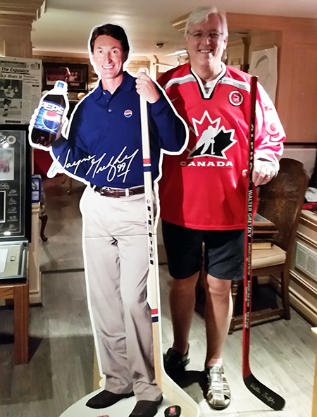 Those jerseys are all gamers – Team Canada, LA Kings, and an Eastern Conference jersey with the Rangers. Walter pulled out a life-size Pepsi cut-out of Wayne and insisted we pose with him! Once we had our fill of jerseys, we offered to take Walter out to lunch. We stepped outside and headed towards the rental car, but Walter would have NO part of that, HE was driving, and boy did he!