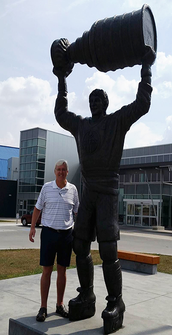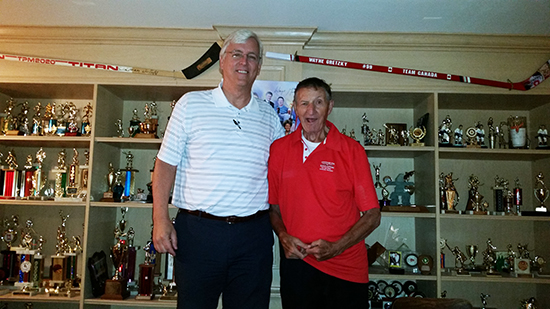 Wednesday, my good friend Bob made arrangements for us to go to Brantford to visit Walter Gretzky’s home and take him to lunch. I’ve met Walter a few times and he is one of the nicest people you’d ever want to meet. He is kind, humble, sensitive, and has a genuinely kind soul. Walter invited Bob and I into his home, sat us in his living room, and just talked to us for 10 minutes just to get better acquainted. Then he took us down to his basement where he, as a father, built a trophy case where he kept every trophy Wayne had ever won as a kid. La Crosse, Soccer, Hockey, Baseball, you name it. Every childhood award is still in the Gretzky basement.