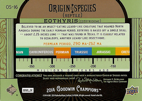Cards OS-1 through OS-40 are Reptiles that fall 1:100 packs of 2014 Goodwin Champions on average.