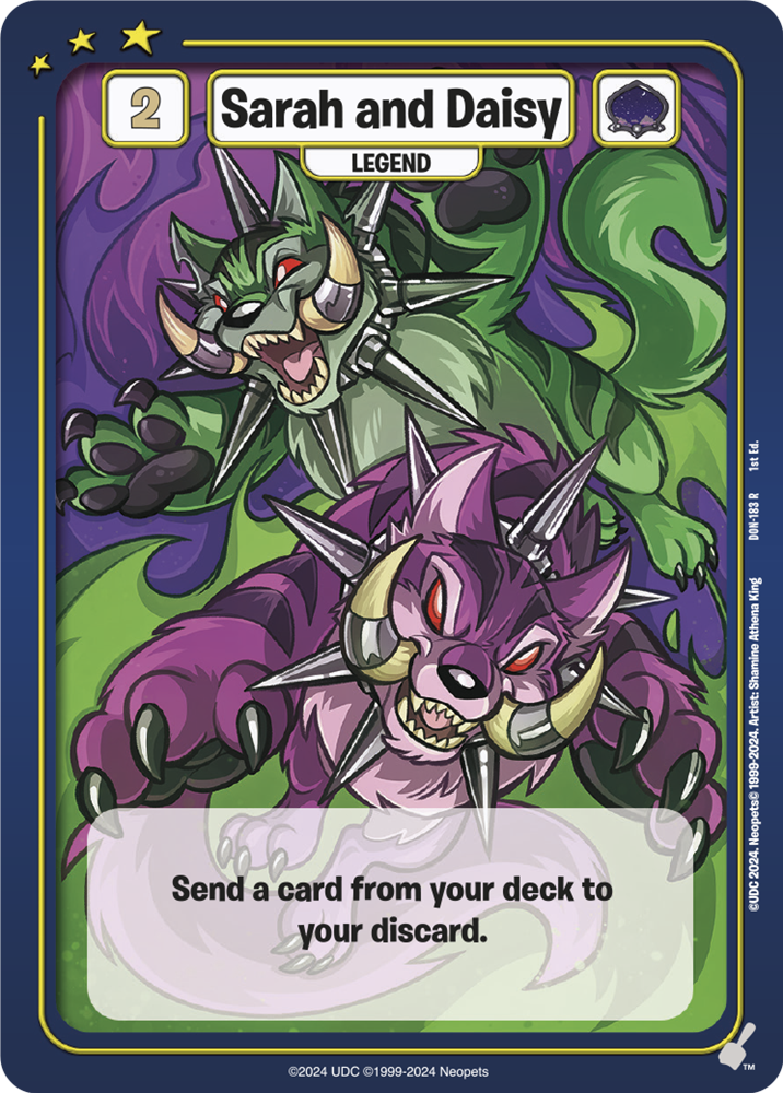 It is so hard to choose a favourite as I have always loved drawing Neopets! Neopets is entirely responsible for catalysing my doodles during class, practicing my art every day with a mind to work for TNT since I was 12, and is hugely inspirational in why I’m in the games industry to this day! It was an honour to contribute to such a huge part of my childhood in this way. Of course I loved the classics, your Vira, Ghost Lupe, Meuka, and of course, the Pant Devil! But I would probably have to go with Jhudora’s girls, Daisy and Sarah, as my favourite card in the end. Their colours, their designs, their poses … There was so much great art to take inspiration from, and who knows! Maybe I’ll get to draw the leading lady herself one day!