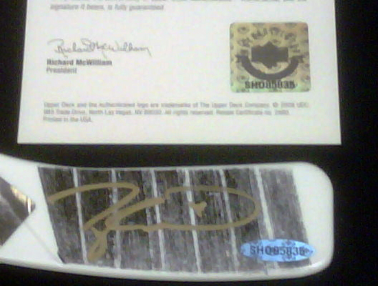 Nick Leslie:The Upper Deck Authenticated hologram database is a great tool to check up on a UDA piece that you invested in. We didn’t move this service online until 2002, however. For items that are older than that you can call Upper Deck Customer Care to verify the authenticity of your piece at 1-800-551-8220. Some holograms after 2002 will not be in the online database either which usually means that they were signed at a show or event where we could not get images of the pieces here at our headquarters. You can also verify the authenticity of those items by contacting our Upper Deck Authenticated Customer Care team.”