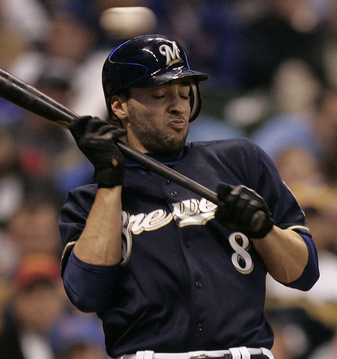 - Ryan Braun glared at Ryan Dempster after hitting a home run off him, following a previous at-bat in the same game where he was clipped on the helmet by a high and inside fastball.