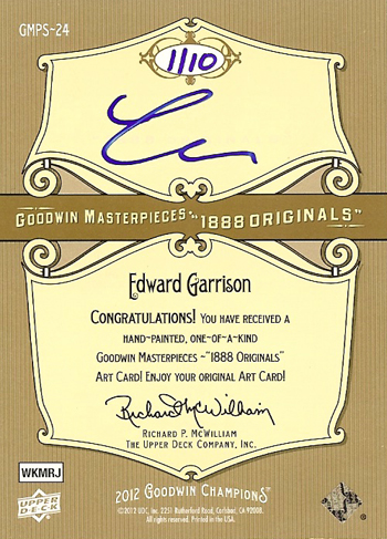 You can get your first crack at discovering the 1888 Goodwin Champions Original Art cards when the product releases on August 14. For more information on 2012 Upper Deck Goodwin Champions, check out these stories: