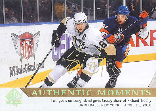 As one of the biggest athletes in the world, Sidney Crosby has a lot on his plate. Currently he is working to reach the NHL® Final and help his Pittsburgh Penguins win another Stanley Cup®. Luckily however we were able to get him to sit down to sign a variety of outstanding redemption cards for fans. Take a look at some of the jaw dropping Sidney Crosby Autograph cards that will be making their way to the market shortly for fans who registered their redemption cards with us.