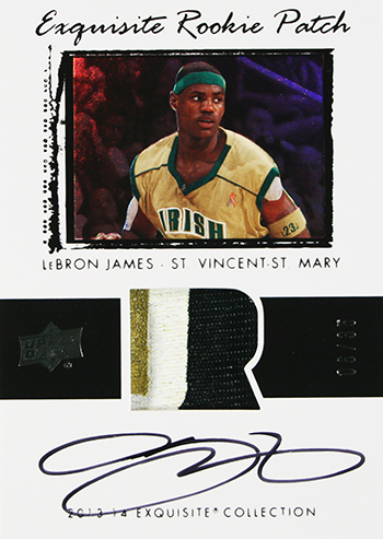 In an effort to continue to deliver incredible content to our basketball fans, we were able to secure LeBron James authentic game-worn St. Vincent-St. Mary high school jersey. Upper Deck scored the jersey at auction last November and quickly put into plans a way to have it incorporated into the company’s most premium basketball release; 2013-14 Exquisite Collection Basketball.