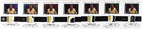 Some of the most sought after cards in the set each year are the tribute cards to the 2003-04 Exquisite Collection Rookie cards. We thought this would be the perfect home to first use this incredible jersey. There are 35 total cards available and as a special preview for the release we are pleased to show imagery of all the completed signed cards! Don’t miss 2013-14 Exquisite Collection Basketball when it releases this November!