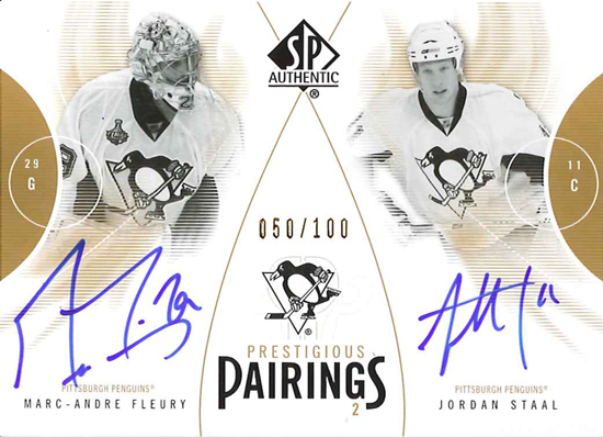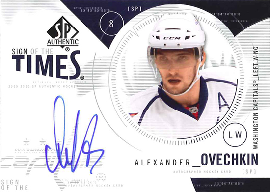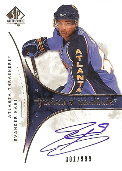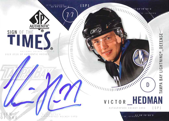We have pushed back the release of our 2009-10 NHL SP Authentic launch a little bit in an effort to get more hard-signed signatures in the product, thus reducing redemptions. Some players, as you can imagine, are a little busy these days with the playoffs so it’s tough for them to sign, but we’re still chasing them down. As I know that many of our collectors can’t wait for the product to hit store shelves, I decided to head down to our product staging area where many of the autograph cards are stored until they are sent off to be packaged. I was happy to get approval to quickly go through and scan some of the more “drool-worthy” cards I could find in the short amount of time I had.