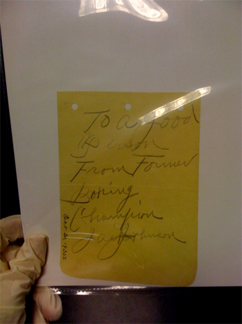 If you’ve been following our Brag Photo of the Week feature over the last week or two, you know that I busted into the vaults here and held a very unique group of four completely different historical autographs at once. Way too good to show all at once, so I’m revealing them one at a time. Last week, I showed you the Napoleon Bonaparte signature we had in house. For this week, it’s legendary boxing champion Jack Johnson.
