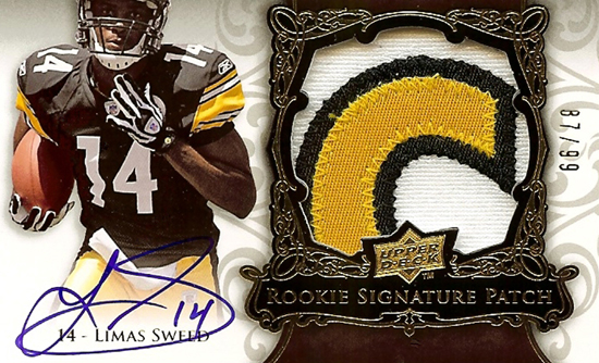 Redemptions can present their own unique challenges for us internally as we can sometimes have issues where cards are lost during shipping, received back damaged or with smeared signatures, etc. When that happens we have to acquire new game-used materials (if used within the card) and then move to reprint the cards which takes time unfortunately. We had a situation like that come up with some high-end Marques Colston rookie autograph jersey cards from our Exquisite Football release. Recently the cards were completed and are currently with Colston to be signed. We are hoping to receive them back sometime in October and then ship them to customers waiting on them. As a bonus for customer’s patience, we will also be sending a previously unreleased rookie autograph jersey card of Limas Sweed from that set. Redemptions for Sweed’s cards were pulled before packout, but they ended up coming back in even though we thought they would not.