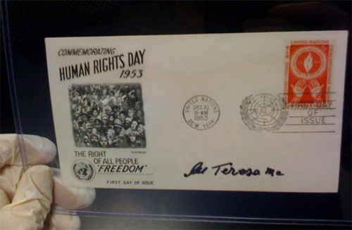 So to review, over the last few weeks I’ve revealed signatures we had right here in the office of Napoleon Bonaparte, Jack Johnson, and John Gotti. Rounding it out? How about Mother Teresa.