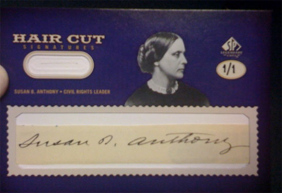 Sad to say, you’ll have to pass on pulling this Susan B. Anthony card: it was recently completed and will be sent to the lucky collector who pulled it this week. That individual will get to brag next, though there’s always plenty of gems like these out there in Upper Deck packs, waiting to be claimed.