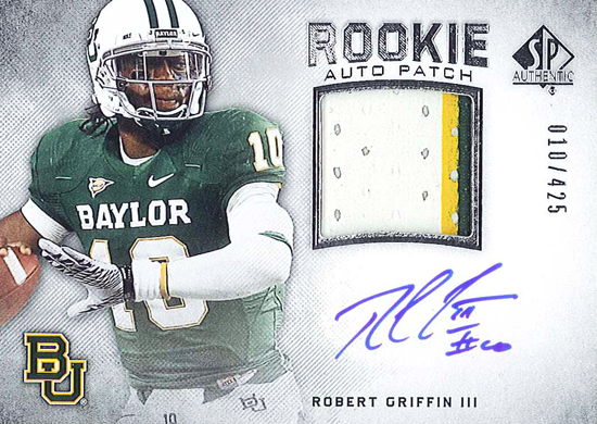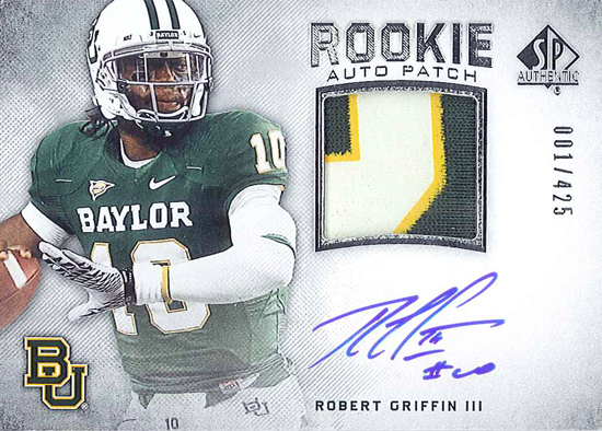 Arguably one of the most exciting rookie quarterbacks in recent history, Robert Griffin III was able to lead the Washington Redskins to their first division title since 1999. Upper Deck had been working on getting RGIII to sign for the company’s 2012 SP Authentic Football set, but the former Baylor star was focused on doing whatever it takes to help his team advance in the playoffs.