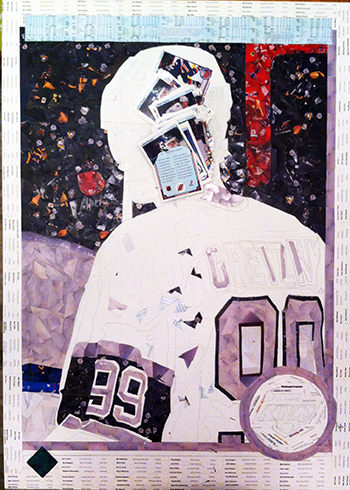 To make things even more interesting, Tim Carroll only used cards from the 1990-91 Upper Deck NHL® release along with 99 Upper Deck Wayne Gretzky Los Angeles Kings cards. Now I have to be honest, I had some reservations about how this would turn out when Tim sent me a preliminary image of where he was at with the piece.