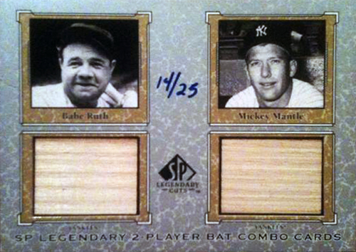 @TreyCumby says his favorite card is this SP Legendary Cuts Game-Used Bat Card of Babe Ruth & Mickey Mantle.
