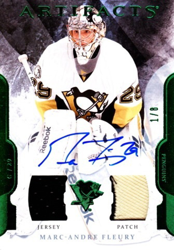 @Robertbomar was thrilled when he pulled this stunning Marc Andre-Fleury autographed jersey patch card from 11-12 NHL Artifacts.