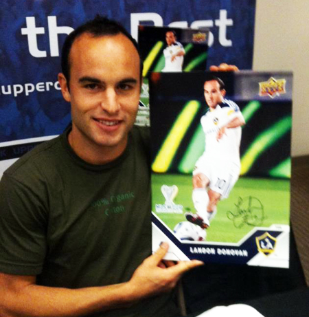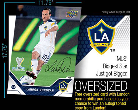 We have a special bonus for fans making a purchase on Landon Donovan UDA items through the Upper Deck online store between now and midnight on December 31, 2011. Each order will include a special Landon Donovan Upper Deck blow-up card to go along with your purchase.