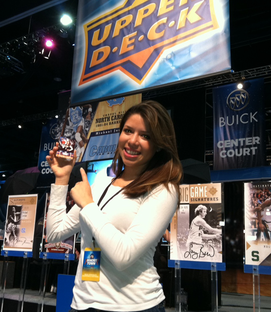 The recent NCAA Final Four trade show in Houston called “Bracket Town” had something for just about every sports fan. Not just exclusive to basketball pursuits, the show also included exhibits featuring baseball, football, ice hockey and even fencing. Staged at the enormous George R. Brown Convention Center, the foot traffic was tremendous (13,000 attendees on Saturday; 20,000 on Sunday) as the Upper Deck booth was busy from start to finish. Our Personalized Trading Card station alone filtered through thousands of excited college hoops fans all five days (March 31 through April 4) of the show.