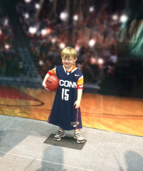 GO HUSKIES: Posing for his first Upper Deck personalized trading card, this little guy couldn’t help but contain his enthusiasm for eventual national champion UConn.