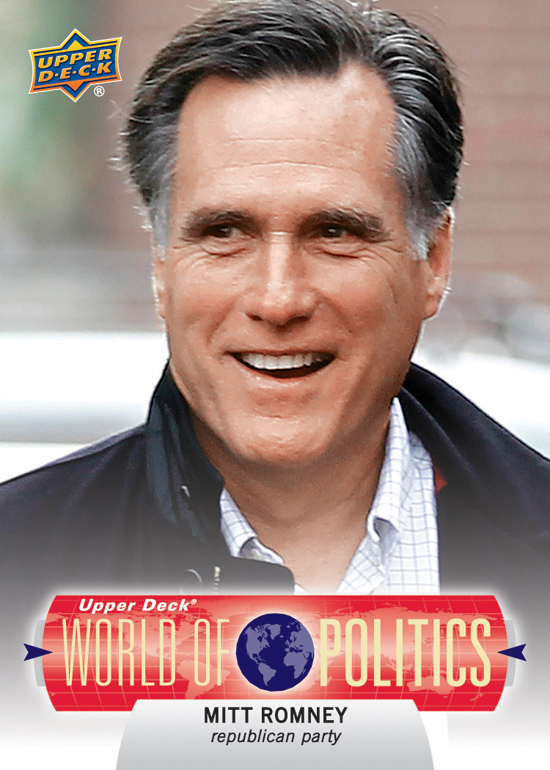 This Tuesday Americans will head to the polls to make their decision on who will be the President for the next four years. And Upper Deck actually produced trading cards of both major candidates in the company’s 2011 World of Sports trading card line. Since we know our fans love giveaways, we thought we would have a little fun with the election coming up between Obama and Romney by offering up some product to our fans. Here is how it will work: