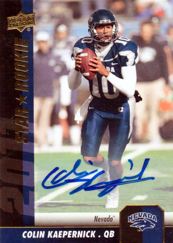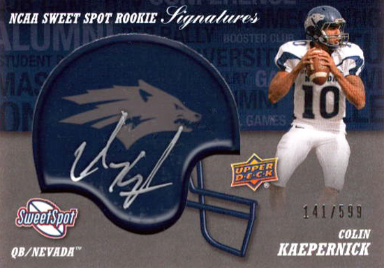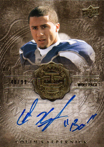 Colin Kaepernick’s success shouldn’t be a surprise to those in Nevada who saw him shine with the Wolfpack. Upper Deck produced a variety of awesome autograph card of the young star during his rookie season. Take a look at some of our favorites: