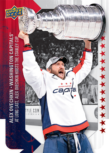 Hockey fans loved seeing the passion Alex Ovechkin exhibited after becoming a Stanley Cup champion. Upper Deck scored some of the best images of Ovechkin’s celebration as time ran out, after he won the Conn Smythe Award and as he hoisted the Stanley Cup for the first time for a special promotional set that will be available this week.