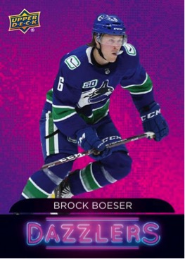 Dazzlers are a new addition for the 2020-21 season and were a huge hit in Series One. Collectors can continue chasing the set with new brightly-colored, full-bodied cards. In Series 2, collectors can find two versions of each player – blue (1 per box, on average) and pink – for all 50 players featured in the insert set.