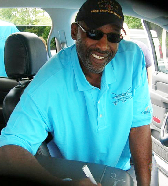 James Worthy signs the UNC Tar Heel truck.