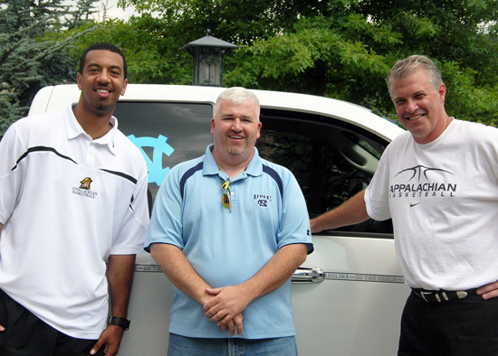 Jason Capel (left), Joel Phillips (middle) and Buzz Peterson (right) pose in front of the Tar Heel truck.