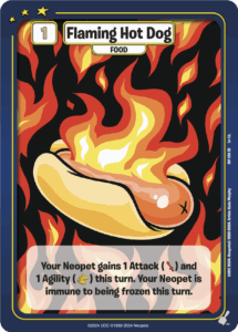 The final card type we are previewing for Defenders of Neopia is Food! Food is a little different in that it is not beholden to the same restrictions as other cards. Your parents told you to never play with your food and the same rule applies here! Food does not count as your card played for the turn! Which means you can play as many as you want, at any time (unless stated otherwise), even on your opponent’s turn. However, unlike Legends or Potions, after you are done resolving the effects of your Food card, it goes to the Void (of your stomach) instead of your discard.