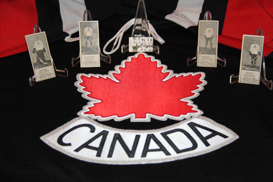 One of my biggest challenges was to find a very small card of Team Canada that appeared in Sweden way back in 1936. I know of only two of these cards that still exist, one is in my collection and the second is in a collection housed in Sweden. Another of the great hunts that I had to go on was to find the four different 1926 Willard’s Chocolates cards of Team Canada players. This was a larger set that featured all sorts of people from different walks, including these four hockey cards. After many years of searching, Harvey at AJ Sports here in Toronto was the one who came up with these cards for me. After he told me he had these cards “somewhere,” I had to remind him for a few years to get searching for them. He finally did and now they are my treasure!