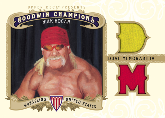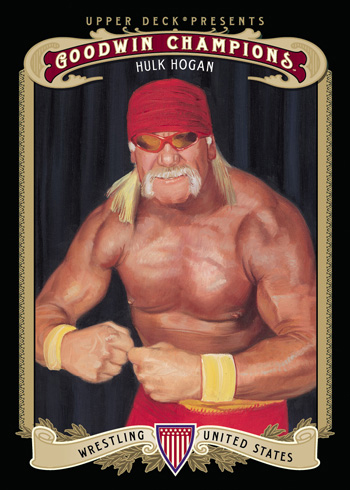 When I heard Upper Deck would be including Hulk Hogan in a couple releases that are scheduled to come out this summer, those memories came rushing back to me. For the first time ever, collectors are going to be able to open a pack of Upper Deck cards and pull trading cards, game-worn memorabilia cards and autograph cards of Hulk Hogan. I for one think that is pretty cool, but I wonder about what collectors will think about finding a wrestler in a pack of UD cards. The “Hulkster” will make his Upper Deck debut in 2012 Goodwin Champions and 2012 Upper Deck All-Time Greats.