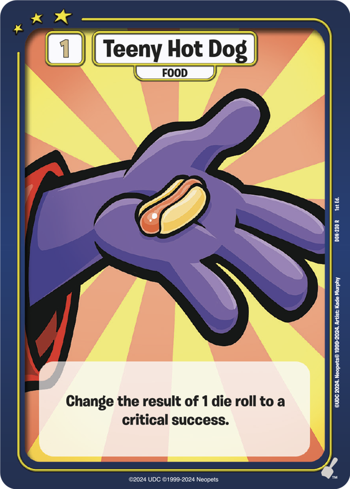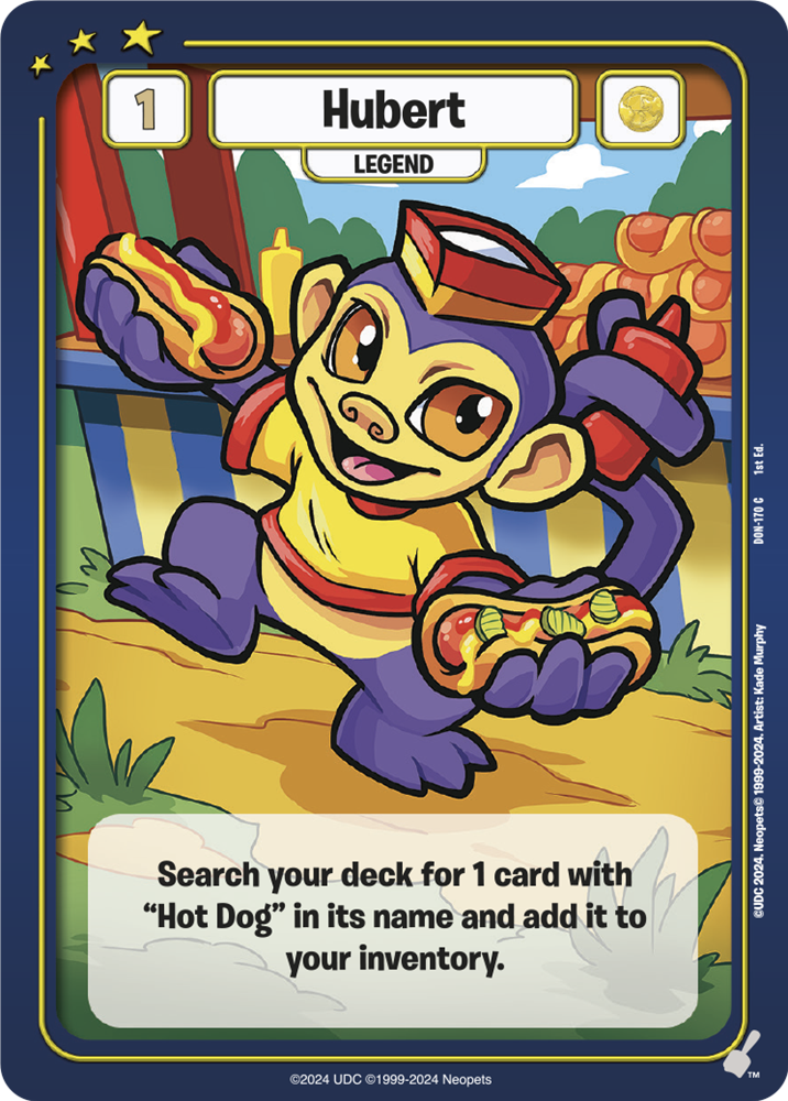 Here is Hubert who will grab you any “Hot Dog” card and a couple of options you might grab. The timing flexibility on Food makes cards like Hot Dog of Justice and Teeny Hot Dog shine and give you ways to interact beyond just your turn.