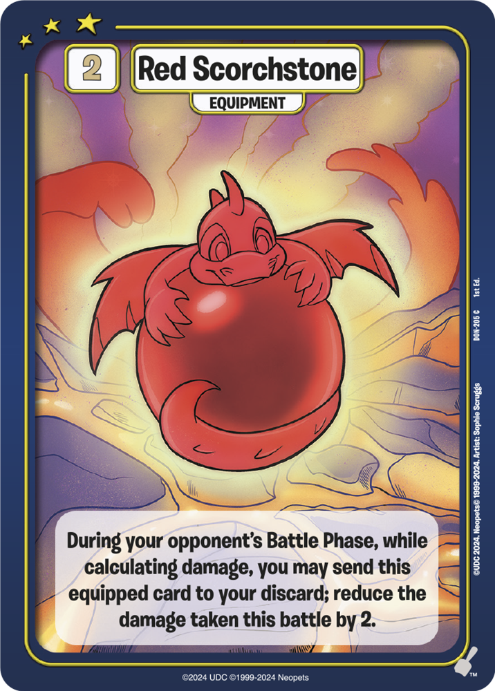 You might even have a way to reduce the damage taken with cards like Red Scorchstone. This is an equipment that you play on your turn and then can later cash it in for some protection on your opponent’s turn.