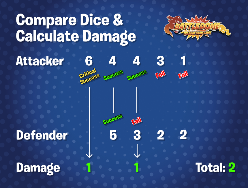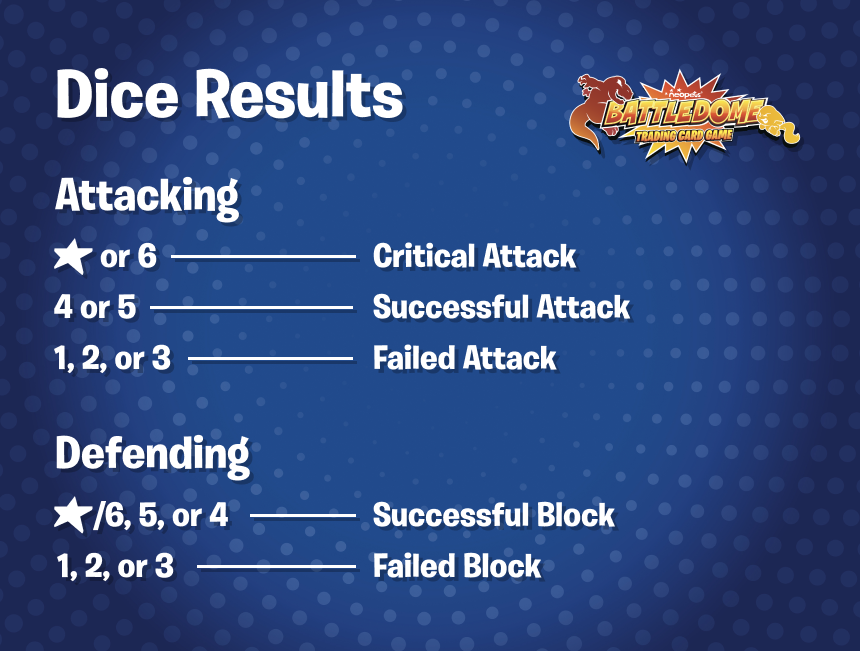 For the defending Neopet, dice results of 1, 2, or 3 are failed blocks and 4, 5, or 6 are successful blocks. Remember, critical attacks from the attacking Neopet cannot be blocked even if the defending player also rolled a 6.