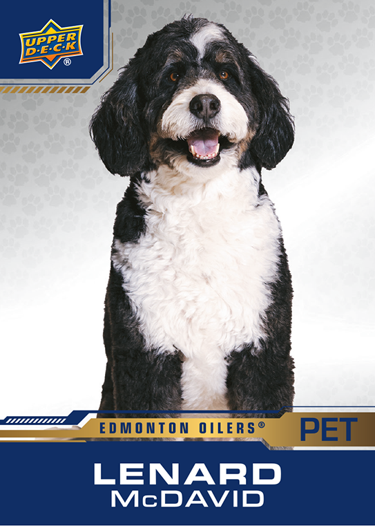 Each active player can be found in 7 different design styles, each with increasing rarity. If you are lucky, you may even find a rare Lenard McDavid insert, featuring hockey’s fastest dog! Even more rare, gold McDavid cards limited to 97 copies can be found alongside McDavid/Draisaitl dual cards limited to just 25 copies. 45 redemption cards round out the set, each featuring a unique code that could correlate to a box of Upper Deck NHL hockey cards or memorabilia.