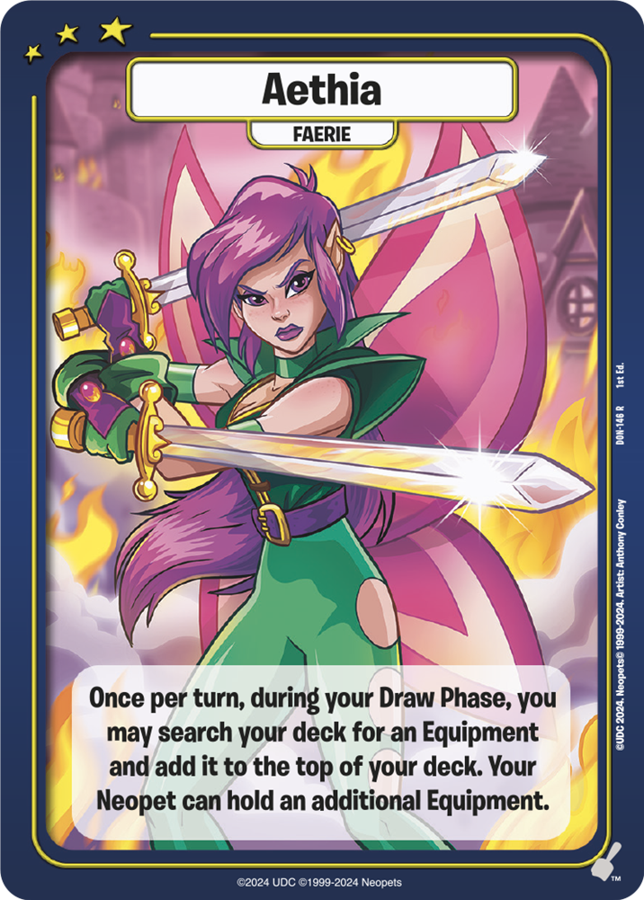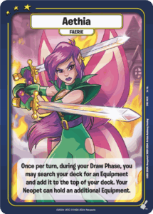 As you can see, Faeries have strong abilities that can do a multitude of things. In this case, Aethia signals a plan around playing Equipment, while Soup Faerie grants you a boost in card draw every turn. This is only a glimpse at the many options Faeries will offer in the Neopets Battledome Trading Card Game. There are another 4 Faeries you will find (1 of which is Naia, who you might’ve seen in the 6-card promo sheets) in Defenders of Neopia, for a total of 6. Who else do you think they could be?