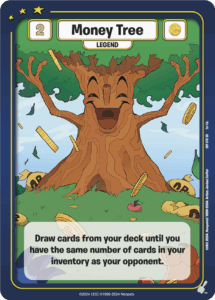 Just like Equipment, Legends have a level requirement needed to play them. However, instead of going to a specific zone in the Battledome, they are discarded after you have resolved the ability on the card. The Legends in your deck will often have abilities crucial to advancing your game plan. You might find that drawing cards, disrupting your opponent, or maximizing your card selection are your best options and will look to fill your deck with the appropriate Legends. Or you just really want to play your favorite characters! Here is a look at the cards for Money Tree, The Pant Devil, and Lightning Lenny: