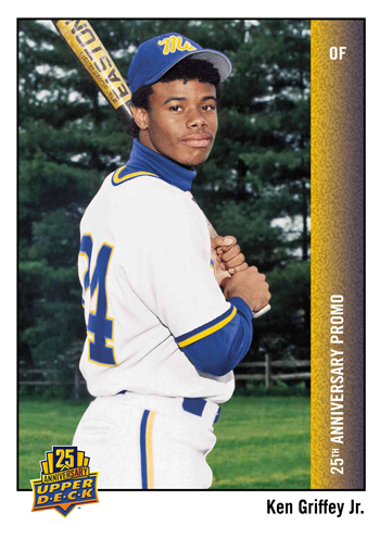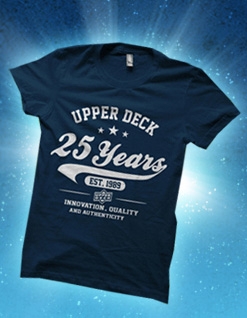 There is no doubt that Upper Deck’s 25th Anniversary celebration is creating a lot of excitement with collectors, especially considering the company is offering up a $2500 shopping spree to the fan who submits the best birthday video to the company. There is an easier way to score some cool Upper Deck swag however like packs, a special 25th Anniversary promo set and Upper Deck t-shirts to join in on the birthday celebration.