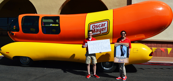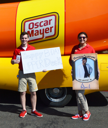 And to kick that off Upper Deck has been receiving congratulatory tweets from superstar athletes like Ernie Els and Natalie Gulbis. But one of our favorite photos and tributes came from our friends who drive the Oscar Mayer Wienermobile offering “miles of smiles” to everyone who crosses their path. Check out some of the images we scored of them as they visited Carlsbad to say, “Happy Birthday” this week! Thanks to all the fans who have made memories collecting Upper Deck over the years!