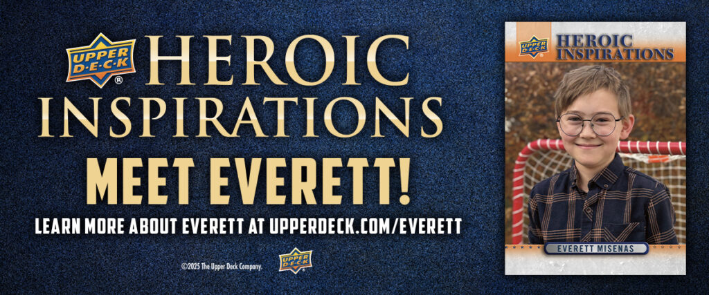 Everett Misenas is a staple in the collecting community in Edmonton. You can usually find him at Wayne’s Sports Cards & Collectibles – his happy place. For years Everett has loved all things hockey – playing, watching, learning about team and player stats, and of course collecting hockey cards. In fact, his dream is to one day own his own hobby shop, and help bring the joy he finds in collecting to others. So when Upper Deck heard about Everett’s story, we knew we wanted to honor him as part of our Heroic Inspirations program.