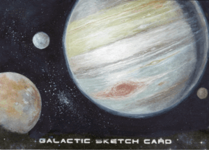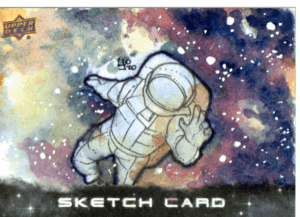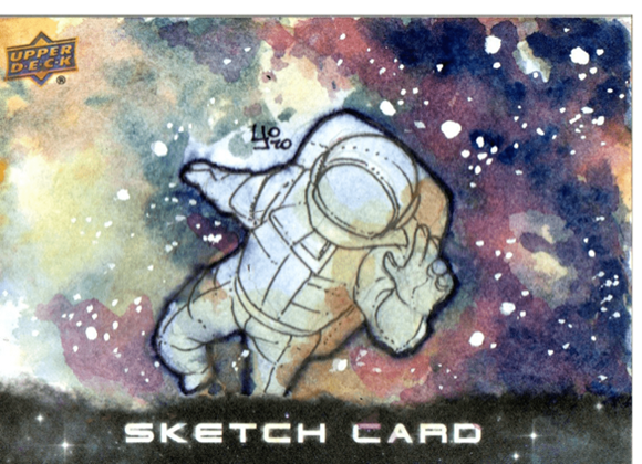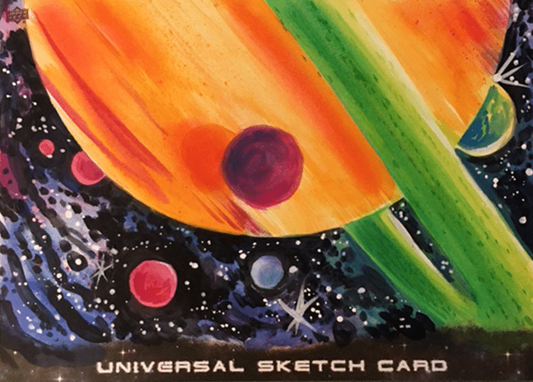 Don’t miss these out of this world sketch cards! Sketch cards come in various sizes: standard sketches which are typical 2.5” x 3.5” trading card size, Galactic Sketches which are 5” x 7”, and Universal Sketches which are stunning 10” x 14”! Note, Universal Sketches can only be obtained by earning e-Pack achievements. The 1-of-1 original art sketches are illustrated by many prominent artists and are inspired by planets, the cosmos, nebulas and more.