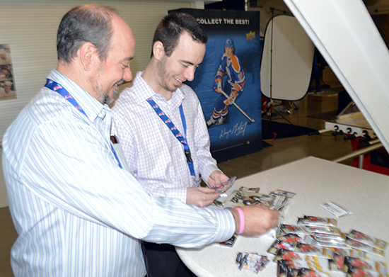 Collecting cards was a family affair for my family as my brothers all did it and my father was definitely involved too. I have so many precious memories of collecting cards as a kid. Now working for the Upper Deck, it is awesome to hear the stories of so many other families totally engaged in the hobby. We surprised three sets of fathers and sons with the opportunity to attend the NHLPA Rookie Showcase and spoiled them a little bit with some new trading card product they could bond over.